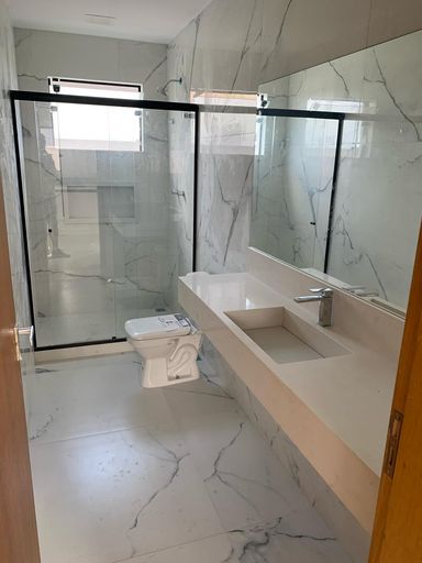 Bancadas dos banheiros em mármore branco prime esculpido